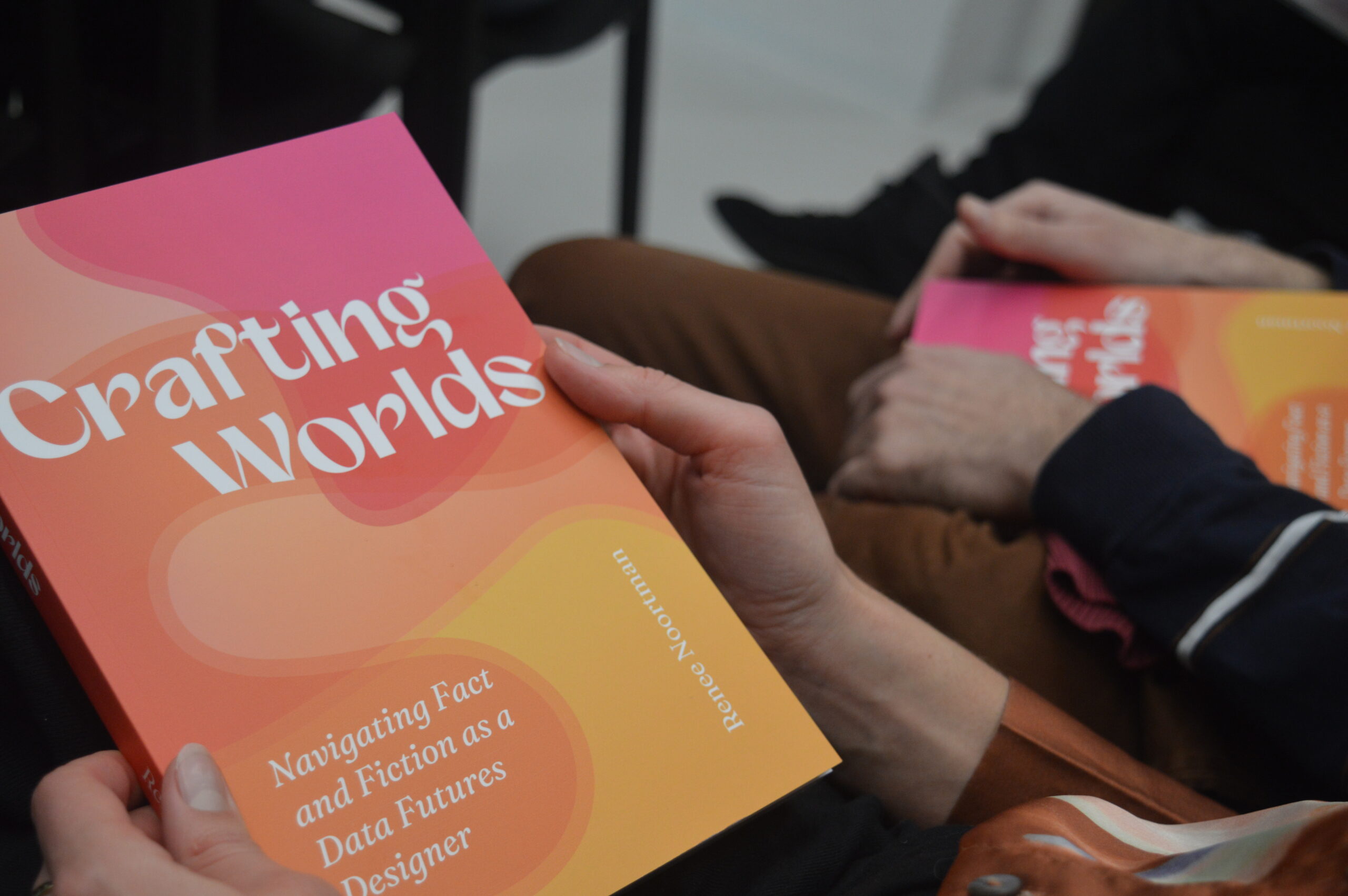 In January 2025 I defended my PhD thesis at TU/e Industrial Design, titled Crafting Worlds: Navigating Fact and Fiction as a Data Futures Designer. Using the principles of data-enabled design as a starting point, my work set out to enrich data design approaches with storytelling to make them (1) more transdisciplinary and (2) more closely entangled with visions of the future.